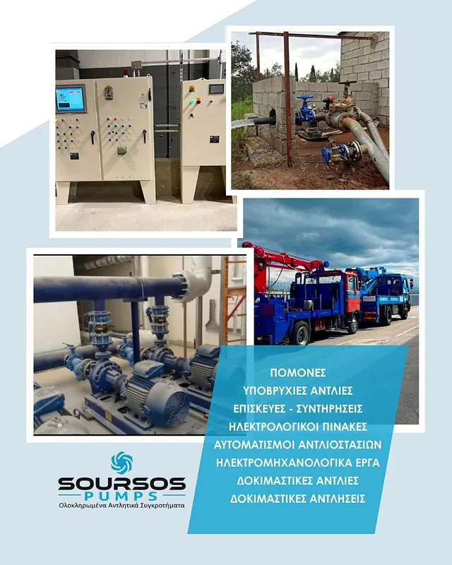 Η Soursos Pumps καλύπτει ένα ευρύ φάσμα εργασιών που αφορούν, κυριότερα, τα εξής: